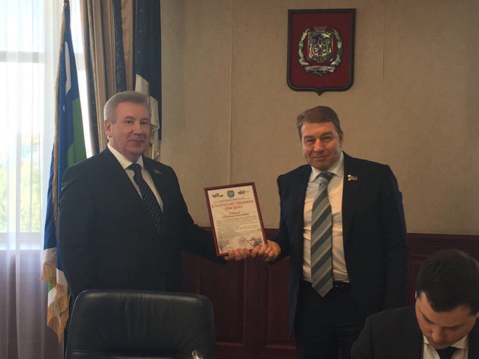 Благотворительная деятельность депутата Думы Югры Алексея Андреева отмечена благодарственным письмом. Вручение памятного адреса состоялось сегодня, 28 июня, во время заседания фракции «Единая Россия». Председатель Думы Югры Борис Хохряков и председатель регионального Молодежного парламента Николай Заболотнев выразили признательность Алексею Андрееву за поддержку автопробега на раритетных автомобилях ГАЗ М-20 в рамках акции «Победа – одна на всех!».«Сегодня очень важно чтить память о знаковых событиях в истории нашей страны – великих подвигах наших ветеранов. Конкретными действиями Вы участвуете в реализации значимых направлений патриотического воспитания молодёжи, чтите преемственность поколений, помня о подвигах своих земляков», - отмечено в благодарственном письме.